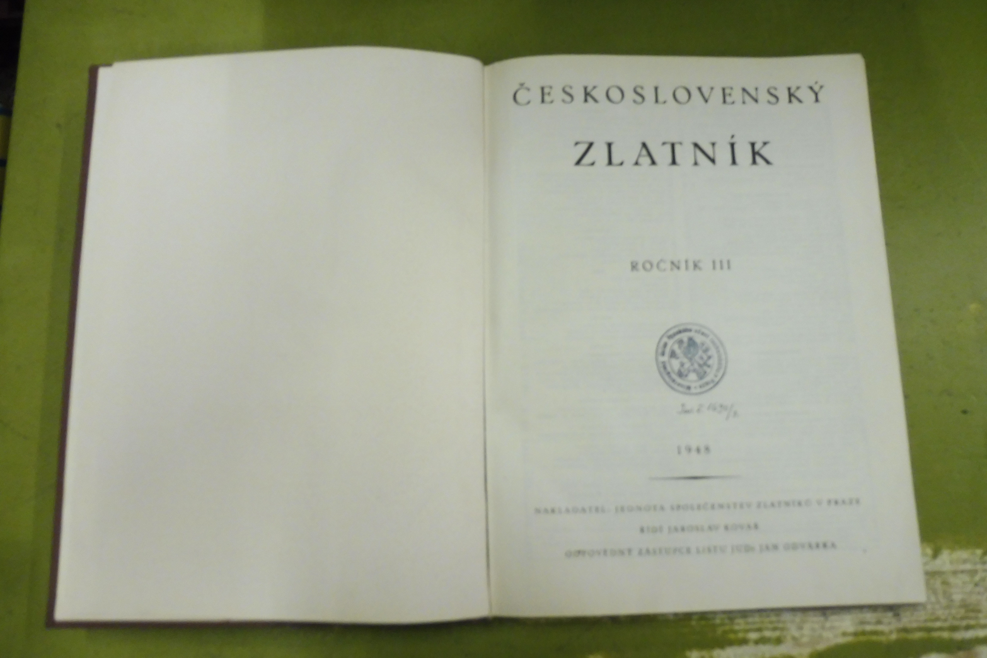 r.v. 1946, nakladatel Jednota společenstev zlatníků v Praze