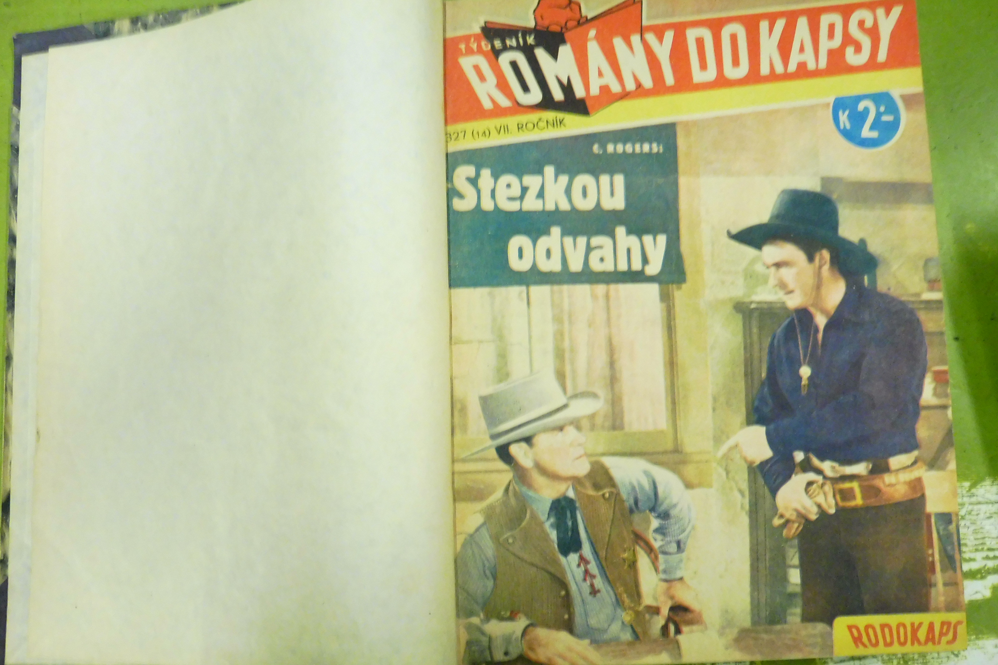 Romány do kapsy, roč. IV., VII., VIII., V., VI., č. 327, 365, 257, 176, 318, 312, 238: Stezkou odvahy, Černý démant, Zakázená země, Král Západu, Trojlístek z Tusconu, Ohnivý oblak, Stín Soneytské stezky a další