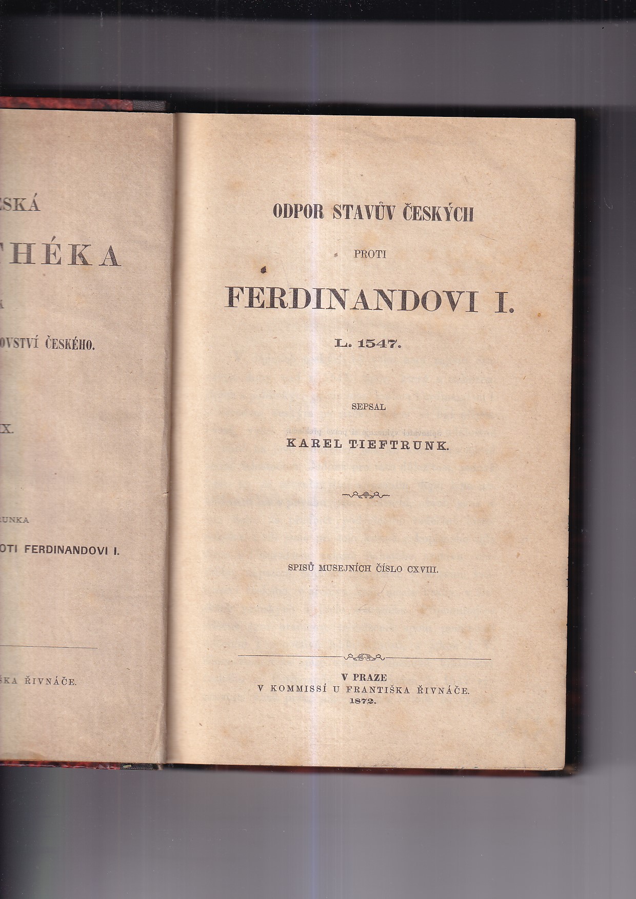 r.v. 1872, nakladatel v kommissi u Františka Řivnáče , 396 stran, vázaná