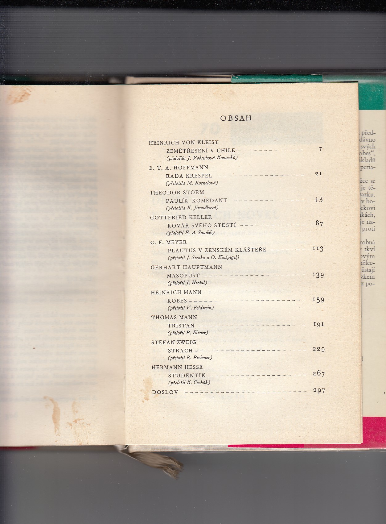 Deset německých novel (Zemětřesení v Chile, Rada krespel, Paulík komedant, Kovář svého štěstí, Plautus v ženském klášteře, Masopust, Kobes, Tristan, Strach, Studentík)