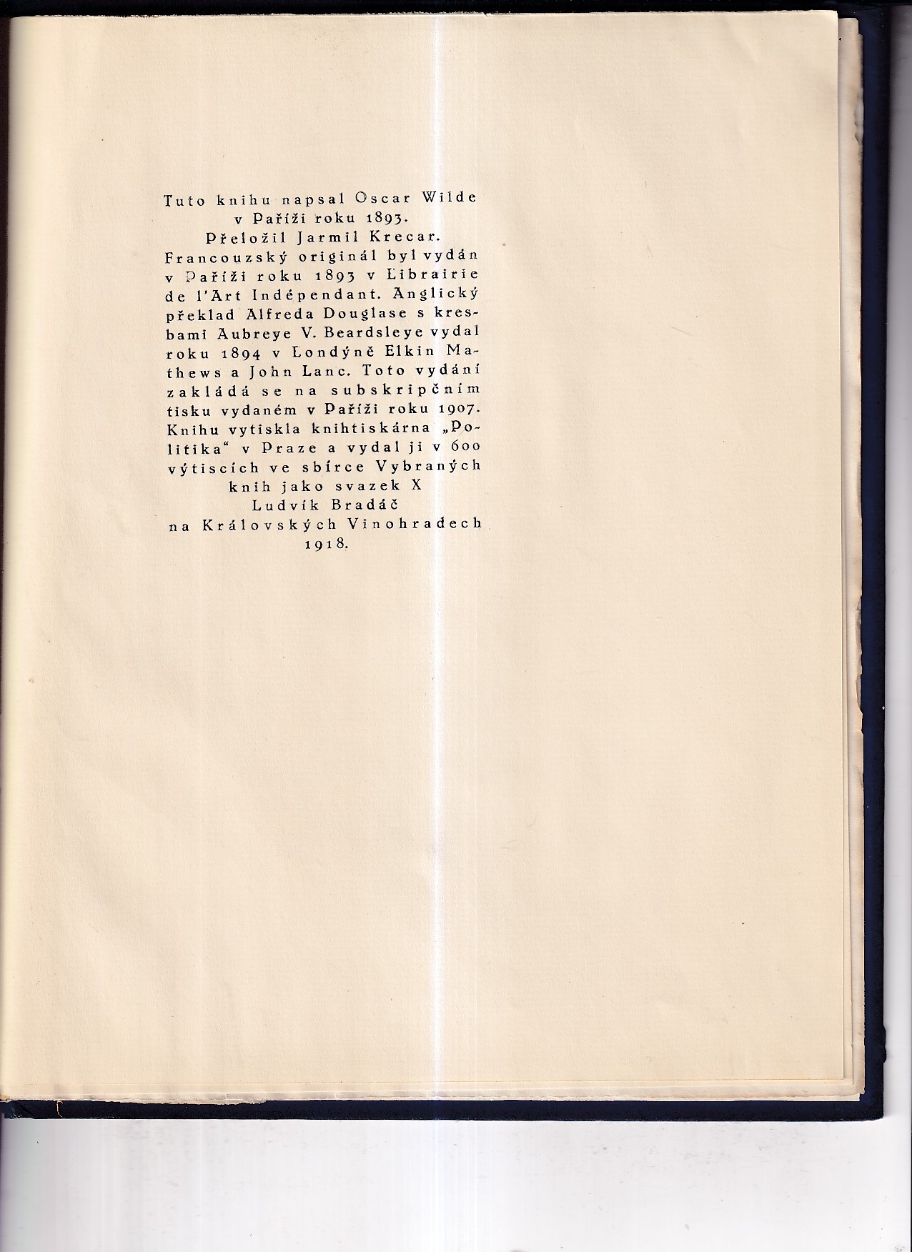 , "Dopis ve vězení a v řetězech", dopis z vězení v Readingu adresovaný autorovu příteli a milenci Lordu Alfredu "Bosiemu" Douglasovi, lehce opotřebený obal